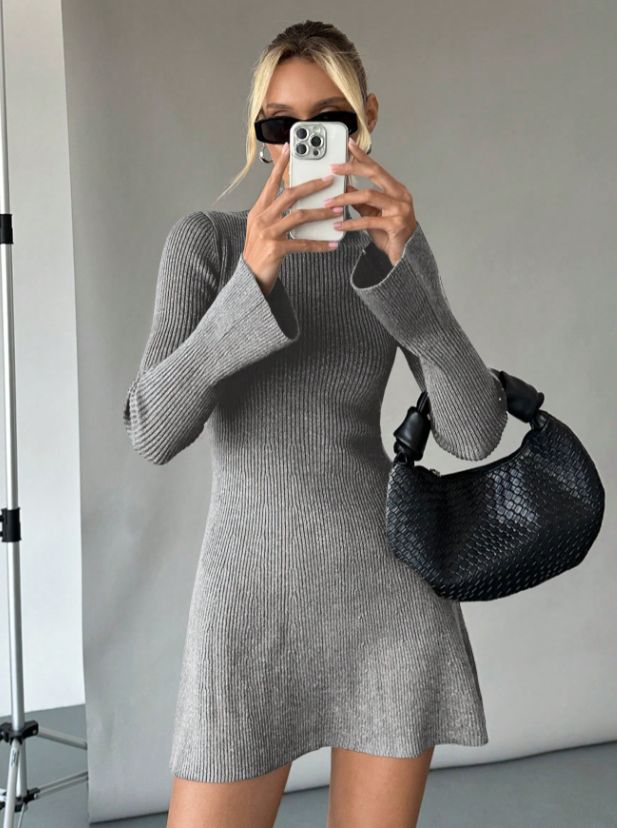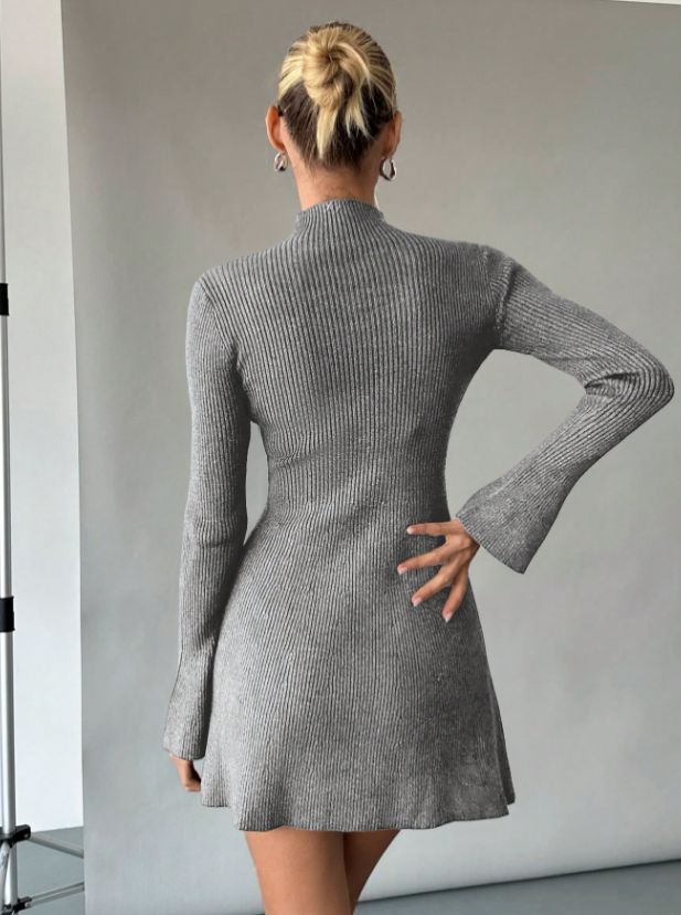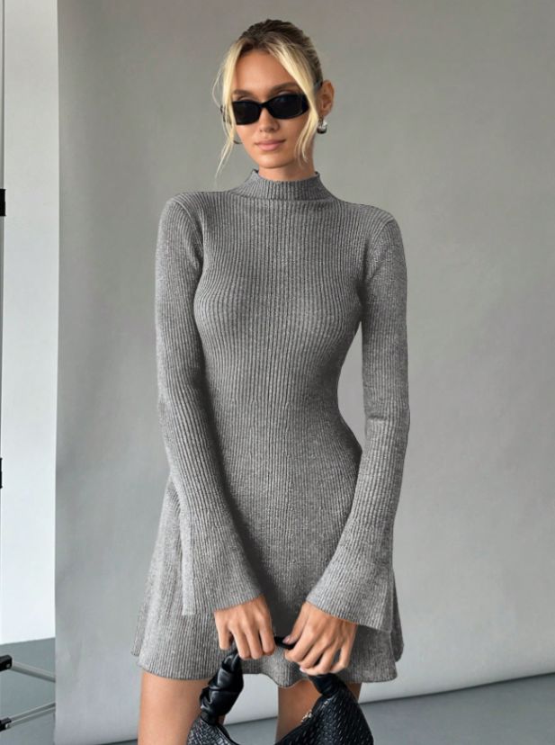 This turtleneck knit sweater dress blends warmth, elegance, and a flattering silhouette for colder seasons. Designed with a soft high neckline, long bell sleeves, and a gentle A-line hem, it creates a balanced shape that hugs the body while allowing comfortable movement.